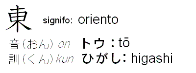 Ekzemple jena litero estas unu kanji, kia signifo estas "oriento".