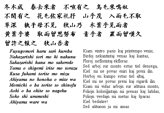 de man'yô-gana por prezenti silabojn de japana lingvo,