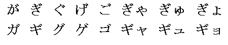 ghi estas skribata per unu serio da hiragana kaj katakana.